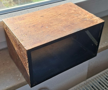 Das Holzgehäuse war rundherum abgestoßen und hässlich.