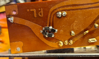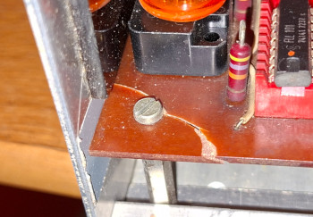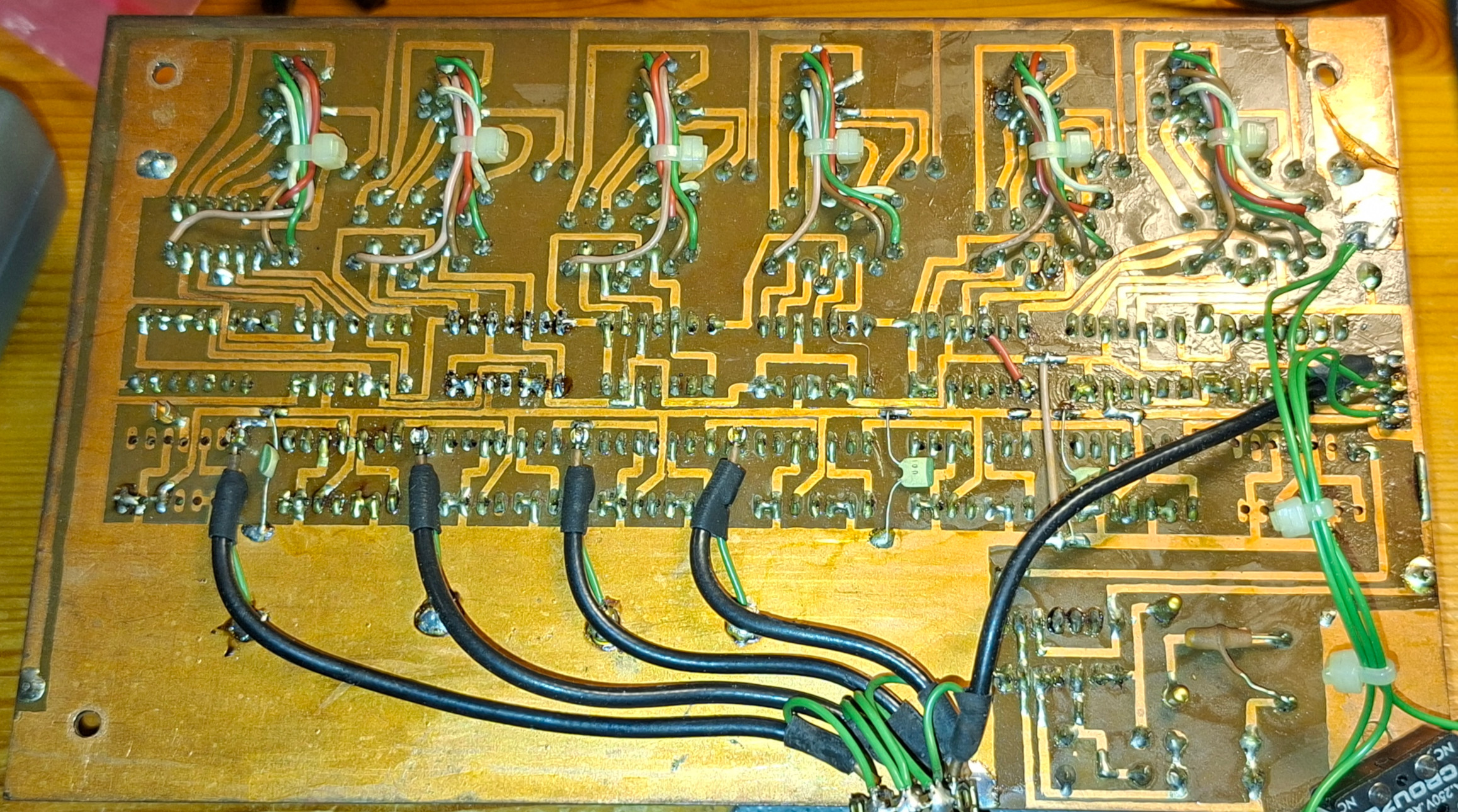 Da das Verfahren nur recht grobe Leiterbahnen zulässt, wurde ein Teil der Verbindungen zu den Röhrenfassungen mit Schaltdrähten hergestellt.
