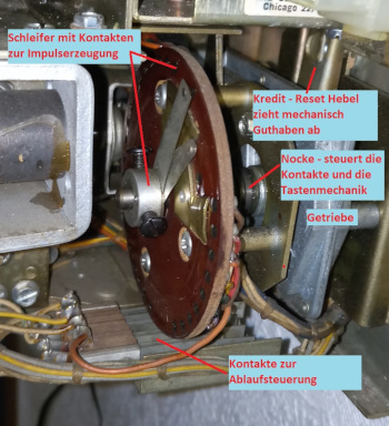 Weiterhin wird während der Drehung ein Hebel in der Krediteinheit betätigt, die das "Kreditrad" zurückdreht und so Guthaben "abbucht".