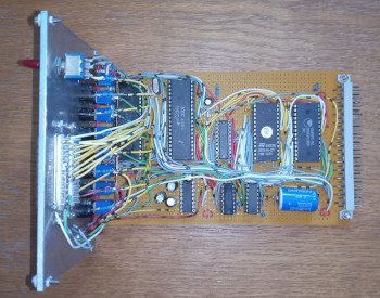 Die Steckkarte passt in einen 19" Baugruppenträger, den ich damals im Rahmen meiner Berufsausbildung gebaut hatte.