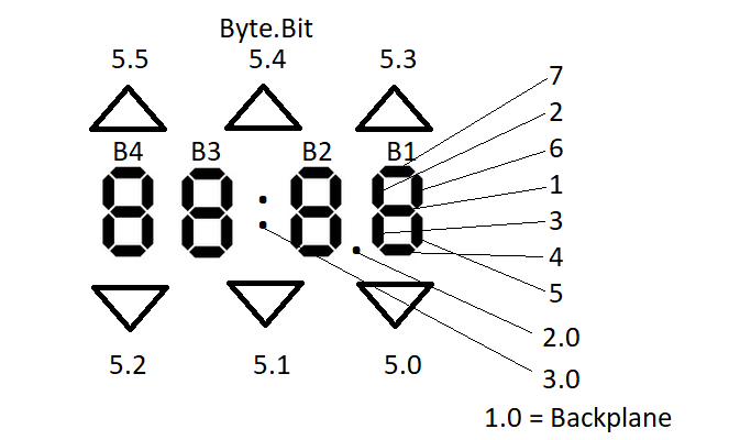 Nach einiger Experimentierei ist es mir so gelungen alle Segmente zu identifizieren und einzelnen Bits zuzuordnen.