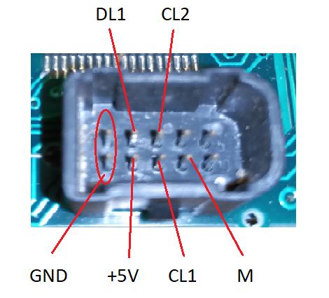Auf die Stiftleiste passt günstigerweise der Stecker eines 10 poligen Flachbandkabels.