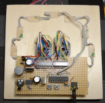 Das Stellen der Uhr erfolgt über zwei Taster für Stunden und Minuten.