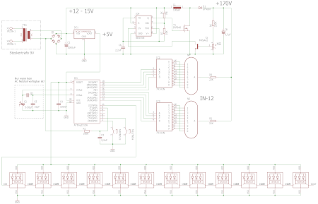 Die Nixie Röhren benötigen eine relativ hohe Spannung von 170V damit sie funktionieren.