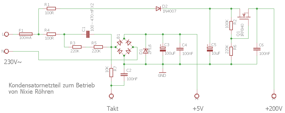 Meine Lösung gewinnt die 5V Logikspannung aus einem klassischen Kondensatornetzteil.