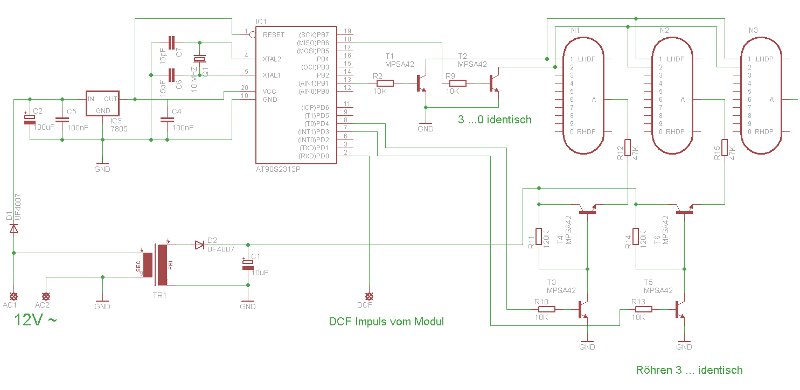 Die Röhren werden im Multiplexbetrieb betrieben, was den Aufwand an Bauteilen stark reduziert.