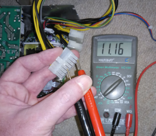 Nach dem Ersatz der beiden Bauteile sollte das Netzteil wieder die erforderlichen 11V liefern.ACHTUNG: Gefahr!