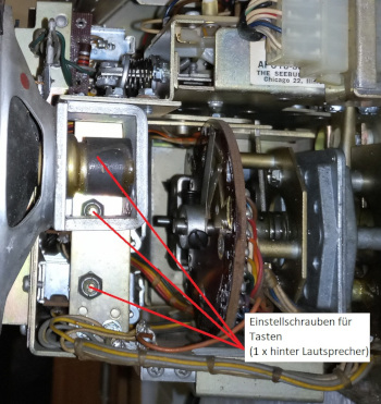 Ich habe dazu die Mechanik in die "Kreditposition" bewegt und die Einstellschrauben so weit eingedreht, bis die Tasten zuverlässig eingerastet blieben.