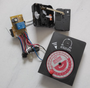 Die Nadel drückt dann auf einen Mikroschalter, der den Futterstreuer für eine einstellbare Zeit laufen lässt.