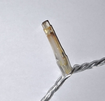 Die Anschlussbeinchen sind mit Schrumpfschlauch überzogen, welcher aber keineswegs wasserdicht ist.