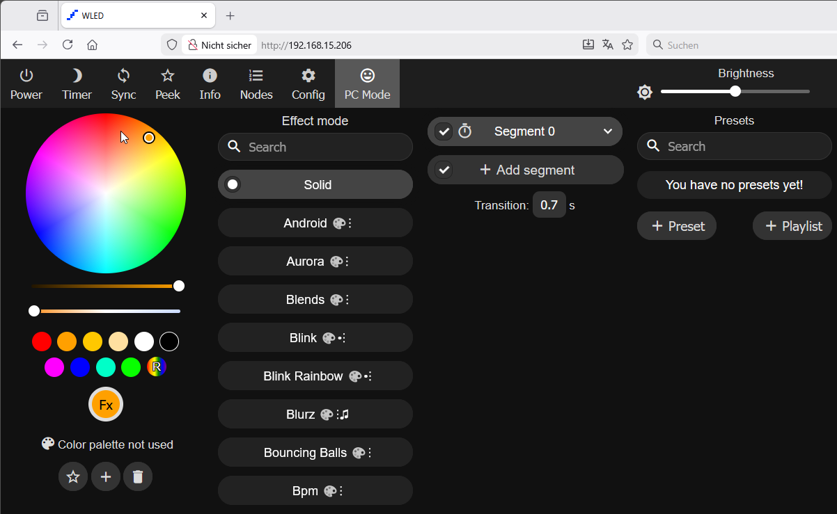 Weiter möchte ich in die Konfiguration nicht einsteigen, da es für meinen Zweck (Steuerung durch Lichtsoftware) nicht nötig ist.