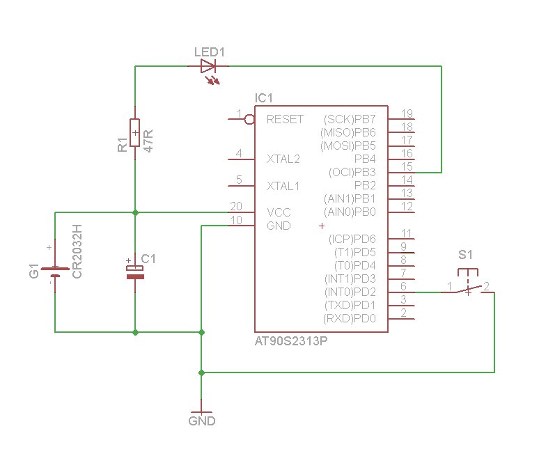 Wird der Taster gedrückt, "wacht" der Controller auf, arbeitet das Interruptprogramm ab und wird danach wieder in den Standby Modus versetzt.