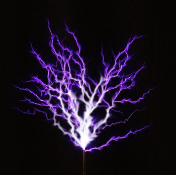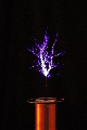 In der ersten Variante hatte ich eine ca. 5cm lange Kupferspitze verwendet, um die Entladungen kontrolliert austreten zu lassen.