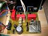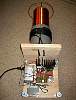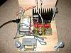Auf die untere Holzplatte wurden die Bauteile Netzfilter, Hilfstrafo und natürlich die Steuerplatine mit Kühlkörper montiert.