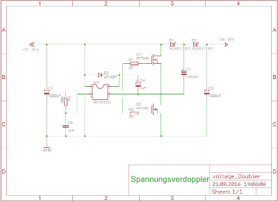 Die Versorgungsspannung von 12 V liegt an VCC an, der 24V Verbraucher liegt parallel zu C1.