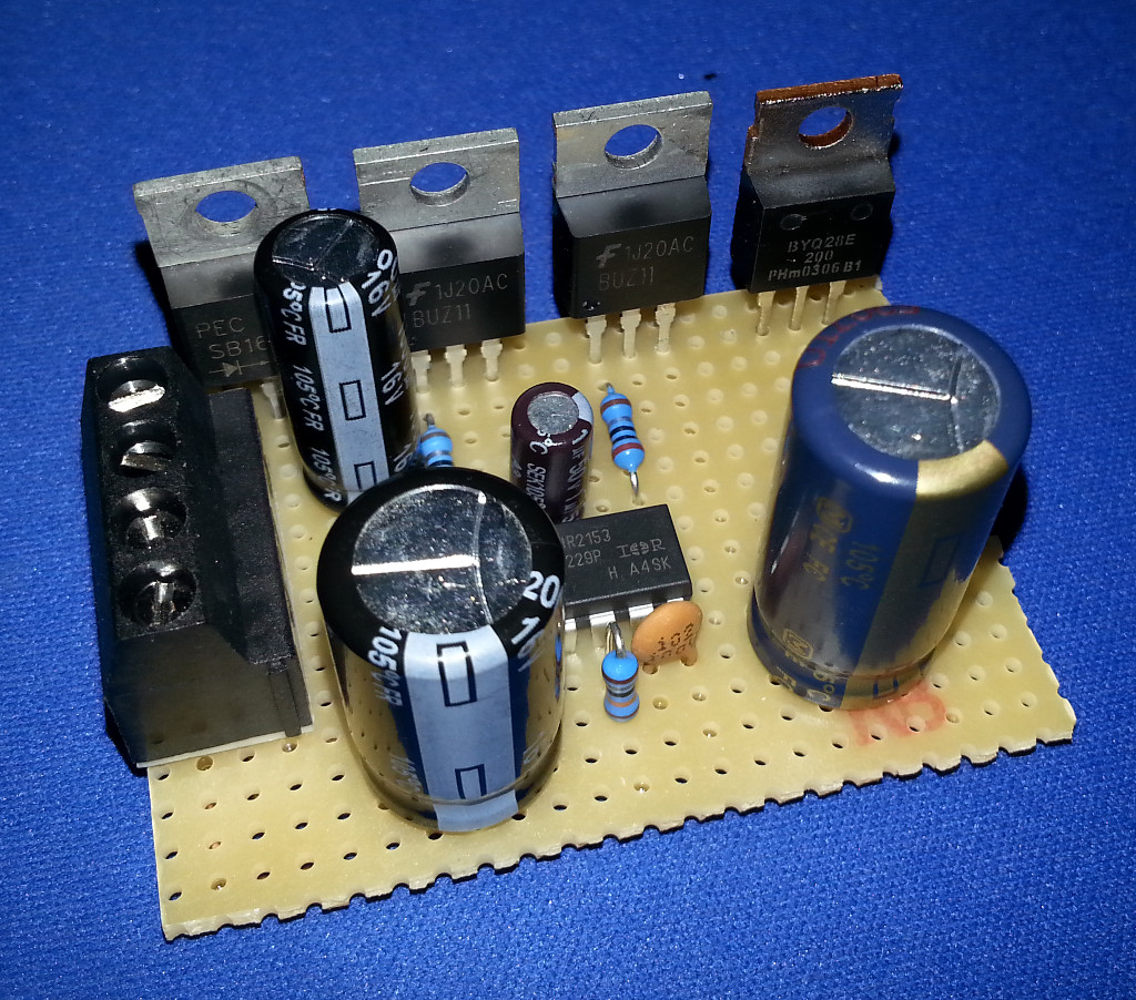 Gesteuert werden sie von dem Schaltreglerbaustein IR2153, welcher einen kompletten Halbbrückentreiber incl. Oszillator beinhaltet.